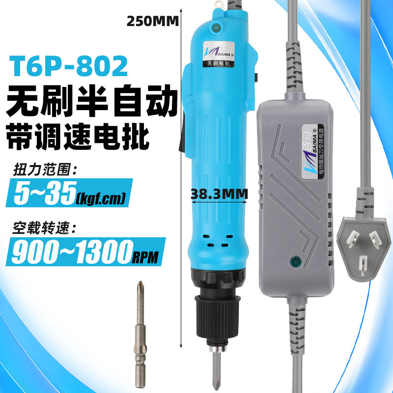 百马220V直插电动螺丝刀(型号802)是一款高效实用的专业级电批工具,采用圆柄6mm设计,握感舒适,适合长时间作业。配备大扭力输出,可轻松应对家具组装、电器维修、木工安装等多种场景。具备自动停转功能,精准控制螺丝拧紧力度,避免过紧损坏工件。支持无级调速,用户可根据需求灵活调整转速,提升操作精度与效率。直插220V供电,动力强劲且运行稳定,无需频繁充电。整体结构坚固耐用,适合家庭DIY及专业维修人员使用,是集性能、安全与便捷于一体的高性价比电动工具。
