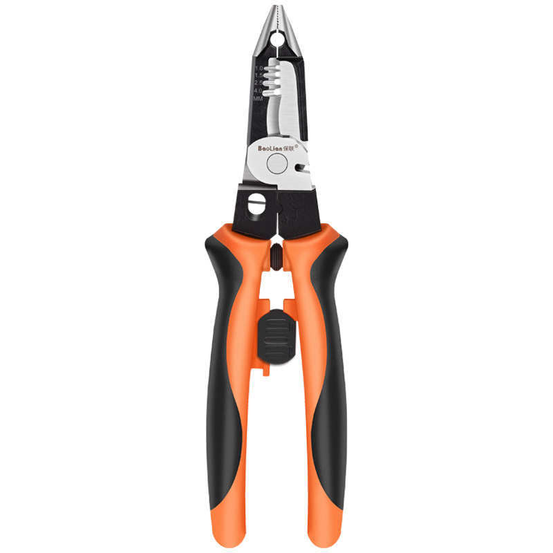 保联多功能剥线钳是一款集电线剥皮、剪线、压线、断线及光纤处理于一体的电工专业工具。采用优质高碳钢锻造,刀刃锋利耐用,手柄符合人体工学设计,握感舒适且防滑省力。适用于多种规格的电线、电缆及光纤,可精准剥除绝缘层而不损伤导体,提升作业效率与安全性。配备可调节剥线深度和多种刀口,满足不同线径需求,广泛应用于家庭装修、通信施工、电气设备维修等领域。结构紧凑、功能全面,是电工、通信技术人员及DIY爱好者的理想选择,真正实现一钳多用,高效便捷。