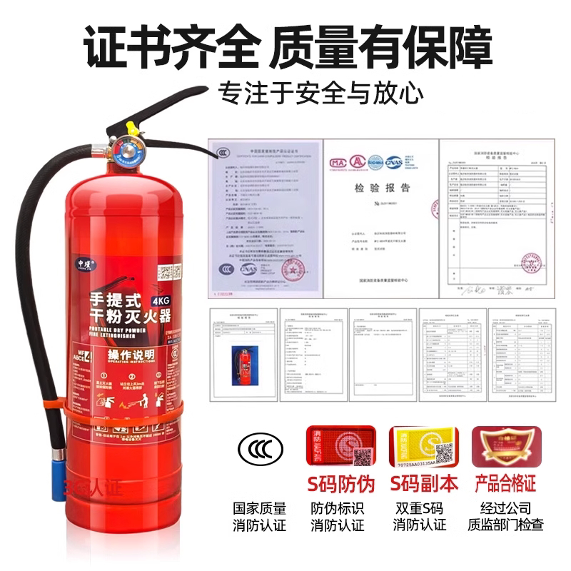 天3C认证新国标干粉灭火器商铺4公斤家用手提式3/5/8kg推车式消防