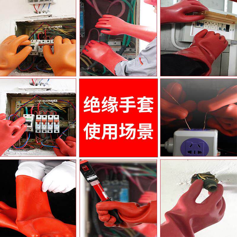 绝缘手套电工380v高压10kv35kv防电低压轻薄款橡胶400v胶手套220v