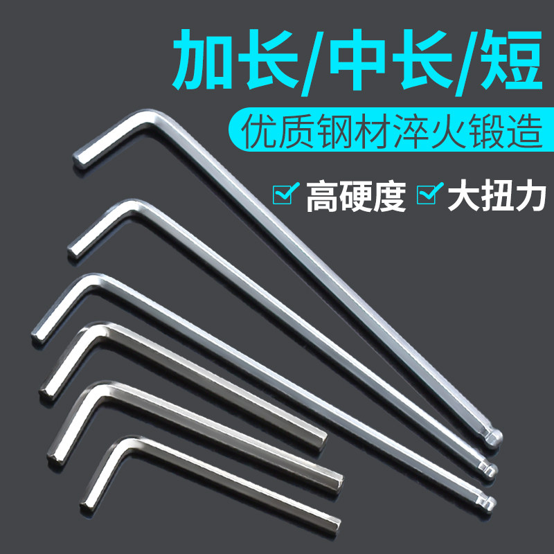 淘宝加长单只内六角扳手单个公制中长球头6角板子特长平头内六方短6棱