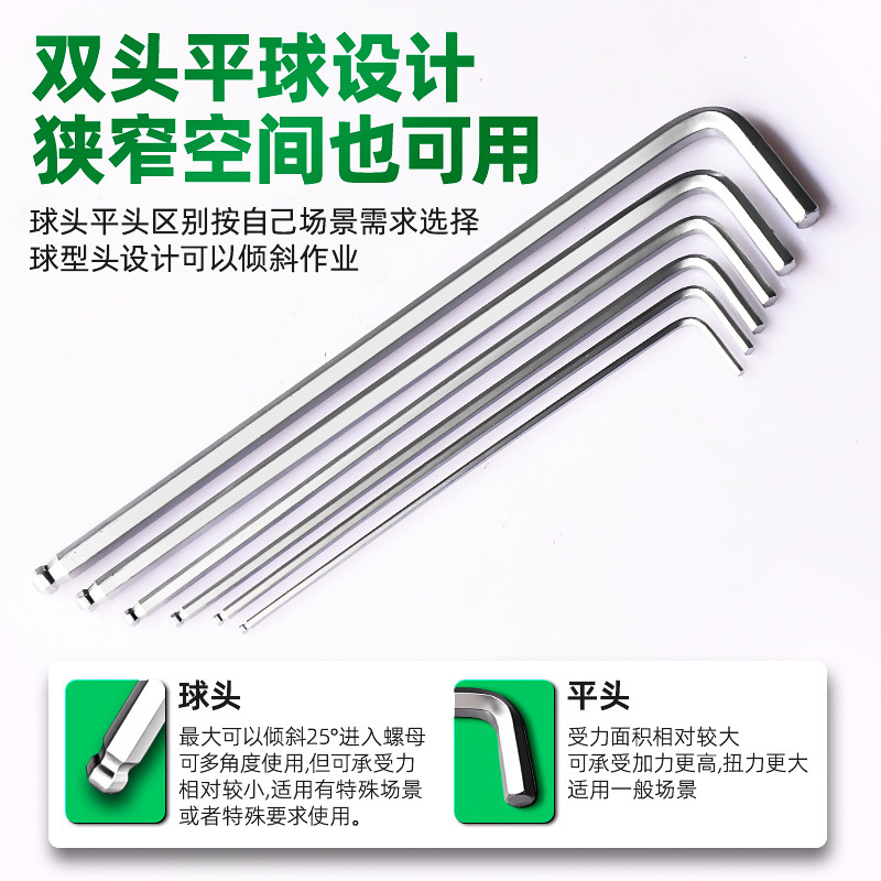 公制内六角扳手铬钒钢CRV扳子工具加长中长球头2.5mm-19mm单只