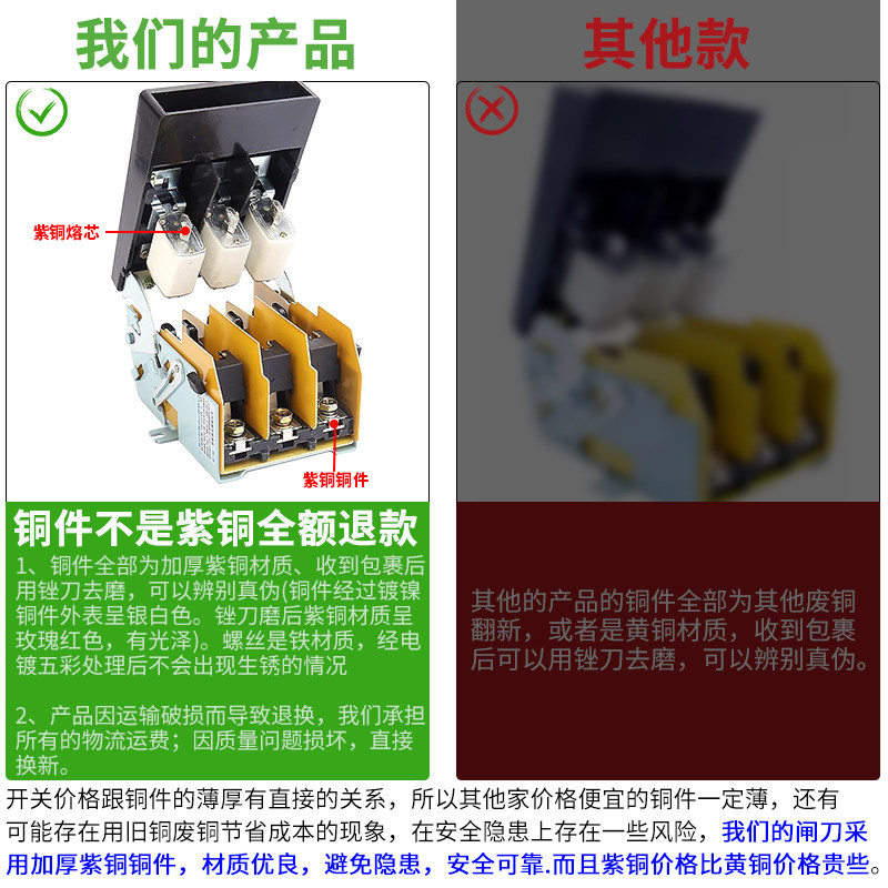 淘宝人民正品HR5-100A 200A 250A 400A630A熔断器式隔离开关刀熔紫铜