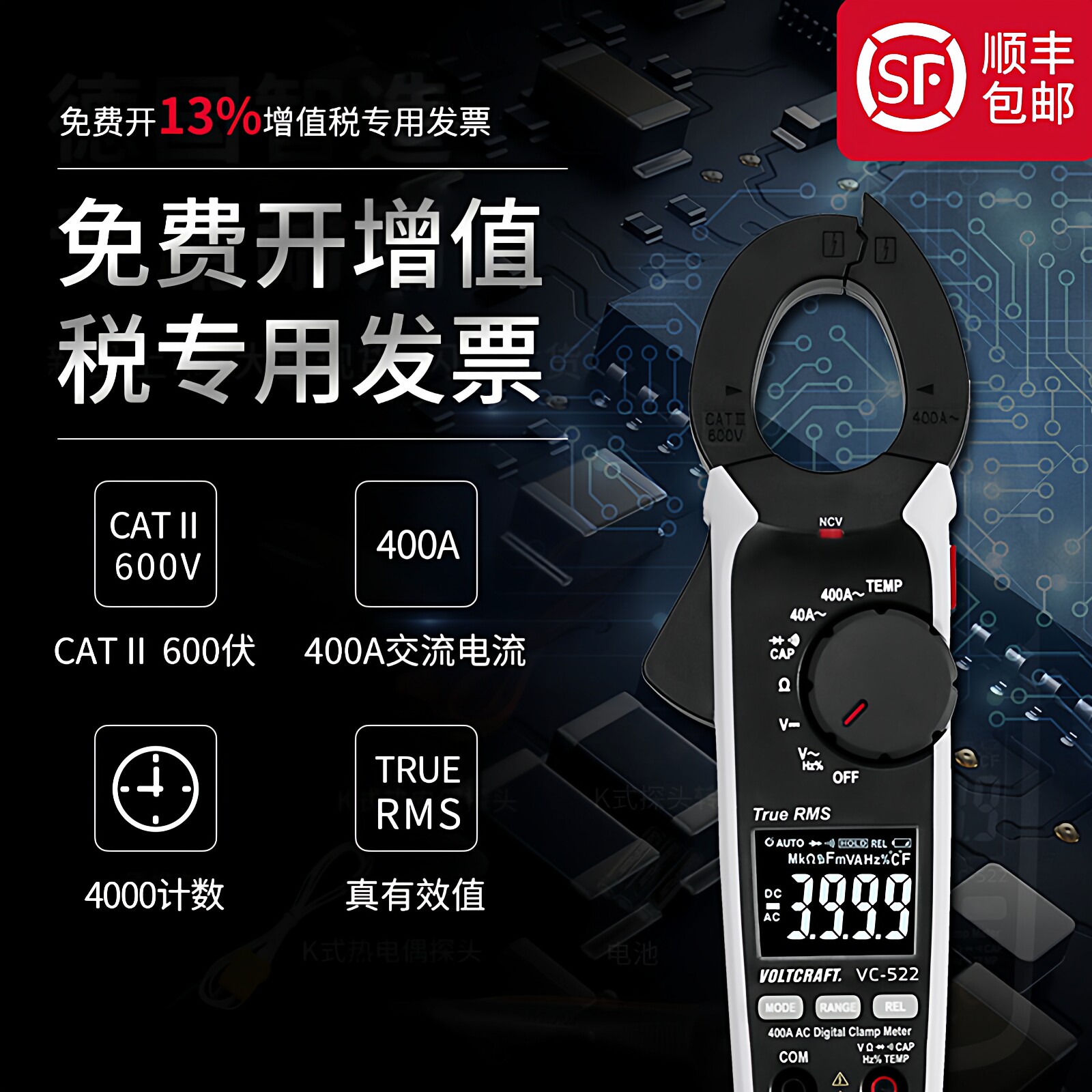 天猫VOLTCRAFT沃卡福VC522钳形表电流钳型万能表钳形万用表钳型全自动
