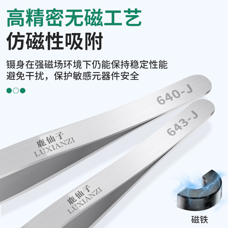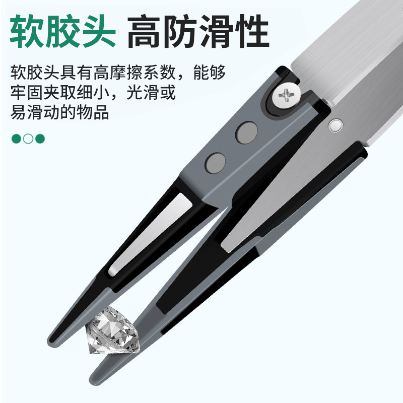 鹿仙子珠宝专用镊子采用高品质软硅胶包裹尖端,专为精密操作设计,有效防滑且不留痕迹,避免刮伤贵重物品。其独特的防静电材质,适用于宝石、晶圆、光学镜片等对静电敏感的高端元件夹取,确保操作安全无损。镊身选用优质不锈钢,兼具韧性与轻量化,握感舒适,长时间使用不易疲劳。精密咬合设计,夹持稳固,操控精准,广泛应用于珠宝加工、电子维修、实验室及精密仪器装配等领域。无论是镶嵌宝石还是处理微米级元件,鹿仙子软硅胶镊子都以卓越性能守护每一份精细工艺,是专业人士值得信赖的得力工具。