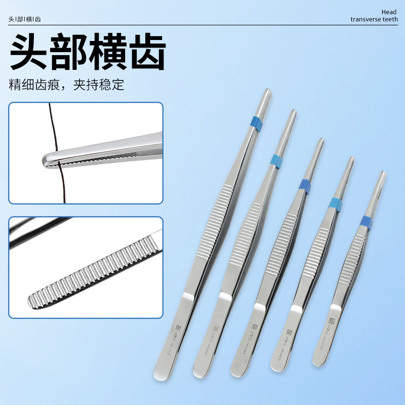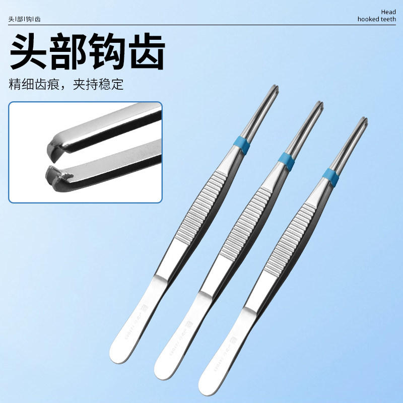 淘宝上海金钟正品敷料镊圆头有齿组织带钩镊不锈钢辅料镊子12.5-30cm