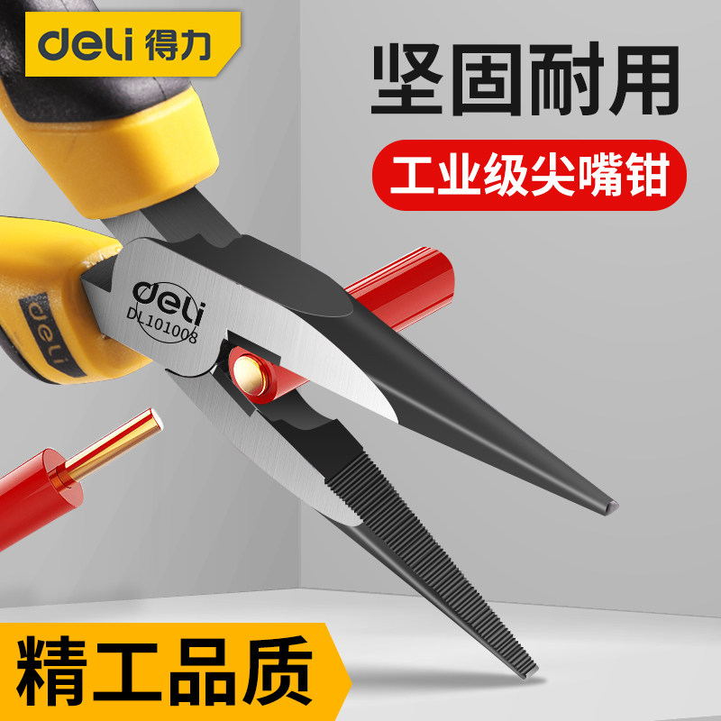 淘宝得力尖嘴钳电工专用多功能工业级6寸8寸手工家用套装尖嘴钳子大全
