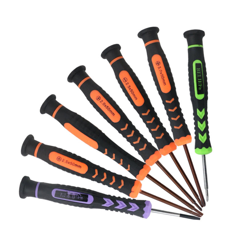 这款小螺丝刀套装包含1.2mm、1.5mm、2.0mm、2.5mm和3.0mm五种精密十字及一字批头,专为电子设备、眼镜、手表、手机、相机等精细维修设计。采用高硬度合金钢材质,经精密加工与防锈处理,确保耐用性与精准咬合。手柄符合人体工学设计,防滑舒适,操作省力。套装结构紧凑,便于收纳与携带,是电子维修爱好者、技术人员和家庭用户的理想工具。无论是拆卸小型螺丝还是精密组装,都能轻松应对,提升维修效率与精度,是日常维护与专业维修的得力助手。