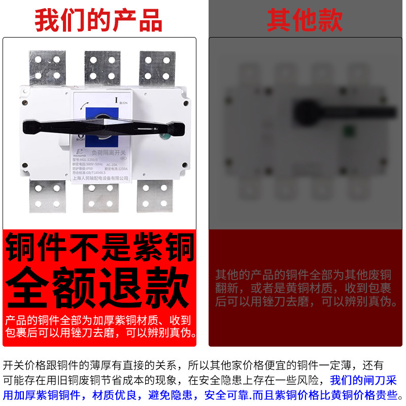 淘宝人民HGL-1600/3负荷隔离开关3P4P紫铜转换闸刀1000A-1250A-1250A
