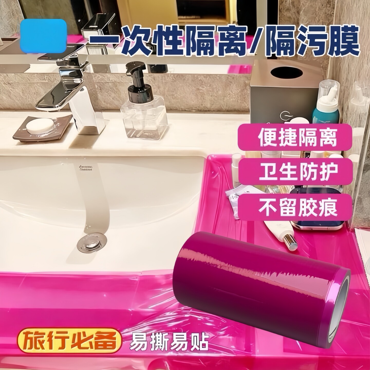 一次性马桶隔离膜(又称旅行保护膜、酒店隔污膜)是专为出行人士设计的便携式卫生防护用品。采用食品级PE材料制成,安全无毒,防水防菌,可快速贴合马桶圈表面,有效隔离污渍、细菌和异味,避免交叉感染。产品轻薄易携带,撕贴便捷,适用于酒店、民宿、公共卫生间等场景。同时,部分款式还可用于门把手、开关面板等高频接触区域的临时防护,提升出行卫生安全。无论是差旅、出游还是居家备用,都能为用户提供安心、洁净的使用体验,是现代健康生活方式的贴心之选。