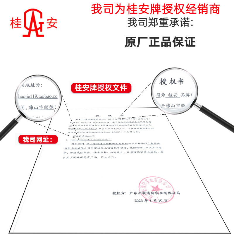 桂安全新国标手提式干粉灭火器(4kg/5kg/8kg等规格)严格遵循国家最新标准,适用于商铺、厂房、仓库等多种场所,可有效扑灭A类(固体)、B类(液体)、C类(气体)及E类(带电设备)初期火灾。采用优质磷酸铵盐干粉药剂,灭火效率高、绝缘性能好,安全可靠。瓶体经防腐处理,结构坚固耐用,配有压力表便于日常检查。操作简便,一拔二握三压即可快速响应火情,是家庭、企业及公共场所必备的消防装备,符合国家消防认证要求,为生命财产安全提供坚实保障。