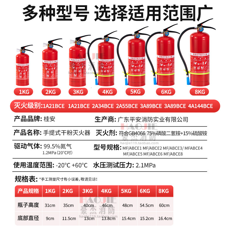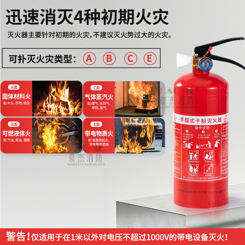 淘宝桂安全新国标手提式干粉灭火器4kg5KG商铺厂房1238公斤ABCE类灭火