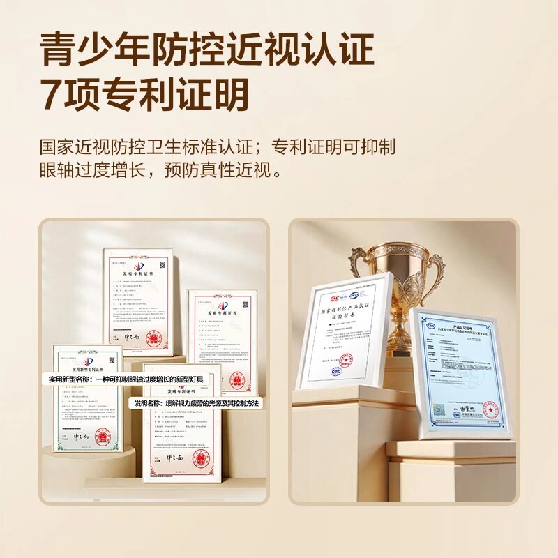 海尔天沐防近视护眼灯Z5是一款专为学生儿童设计的台式桌面学习台灯,融合先进护眼科技与人性化设计。采用全光谱LED光源,模拟自然光,显色指数高达Ra95以上,有效减少蓝光危害,缓解用眼疲劳。配备大尺寸发光面板,光线均匀覆盖整个桌面,避免明暗交替造成的视觉压力。支持多档色温与亮度调节,满足不同学习场景需求。内置智能感光系统,可自动调节光线强度,守护孩子视力健康。灯臂多角度调节,灵活适配各种学习姿势。通过国家AA级照度标准及多项护眼认证,是孩子阅读、写作业的理想照明伙伴,助力健康成长。
