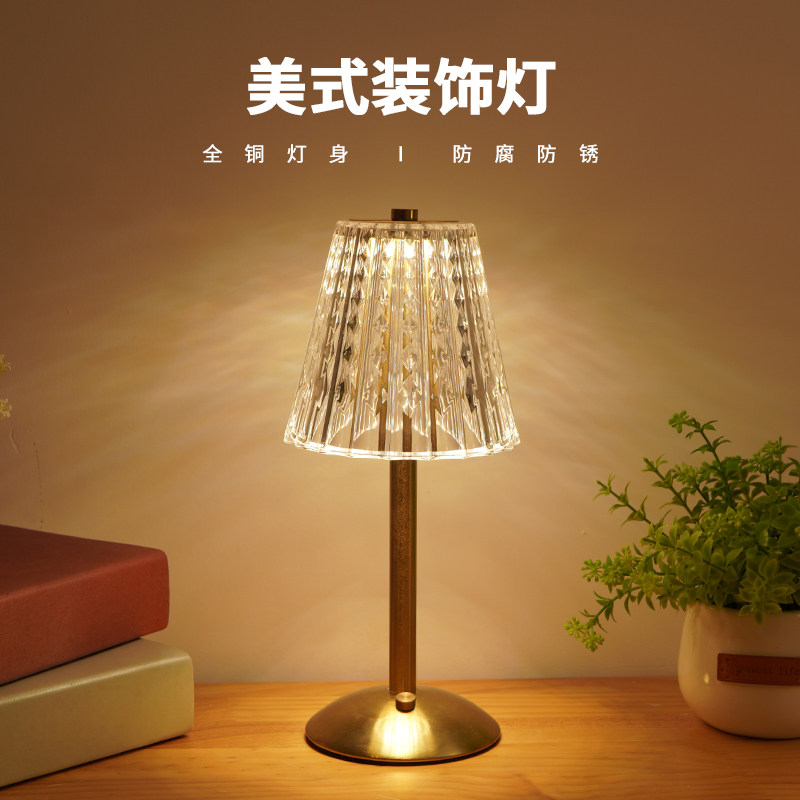 这款水晶复古台灯,融合轻奢美学与复古韵味,是卧室床头柜的理想之选。精选高透光水晶灯罩,光线柔和温润,营造温馨浪漫的氛围感。金属底座质感细腻,搭配精致雕花设计,尽显高级格调。支持USB充电,续航持久,亦可作小夜灯使用,夜间起夜更安全便捷。无论是主卧、客房还是书房,它都能成为提升空间质感的点睛之笔。触控调光设计,三档亮度随心切换,满足不同场景需求。集装饰性与实用性于一体,让每一次夜晚都充满优雅与宁静。
