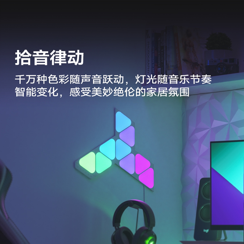 nanoleaf极夜智能拾音情侣电竞房装饰氛围灯电脑背景墙奇光板RGB