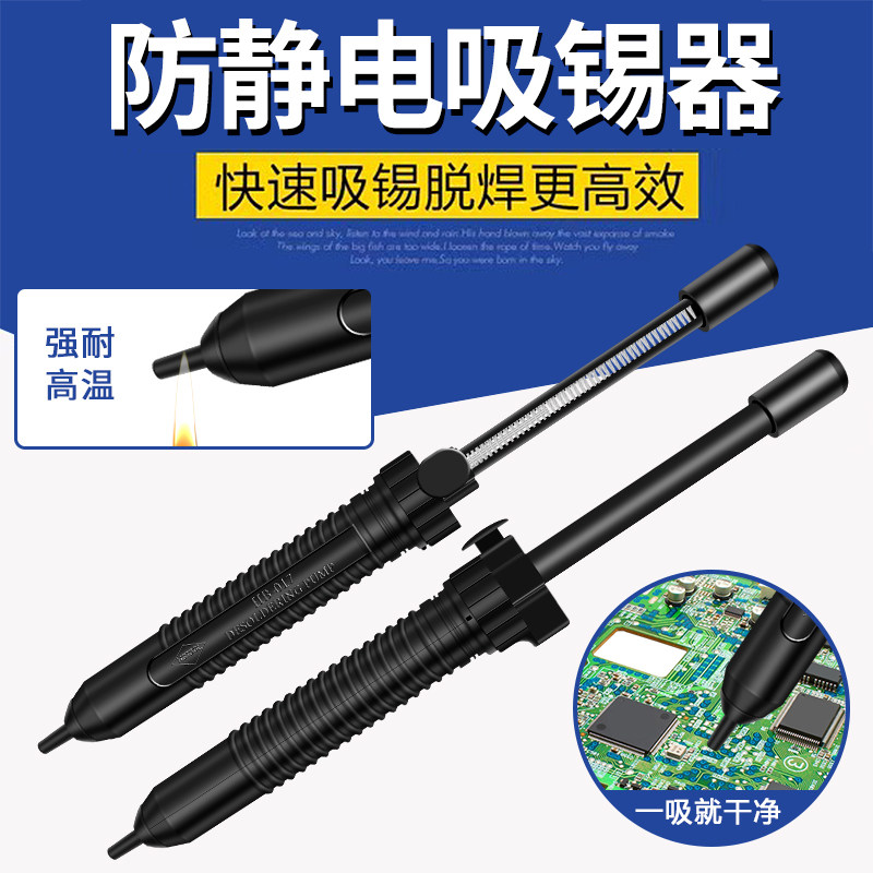 吸锡器017大号加长款是一款专为电子焊接维修设计的高效工具,具备防静电功能,安全可靠,适用于精密电路板操作。其加长型结构设计,便于深入狭小空间,提升操作灵活性。采用强力真空吸取技术,能快速清除焊点上的废锡与残渣,吸力强劲且稳定,确保清洁彻底。人体工学手柄设计,握感舒适,长时间使用不易疲劳。适用于维修手机、电脑、家电等多种电子设备,是电子工程师和维修爱好者的理想选择。耐用材质打造,使用寿命长,性价比高,助力高效、精准地完成焊接清理任务。