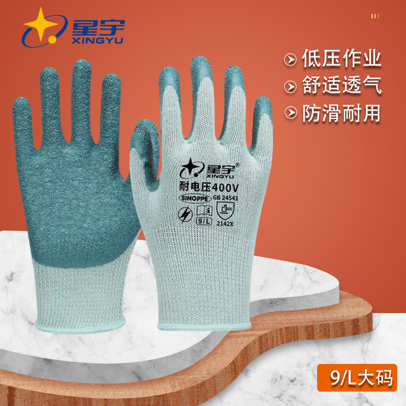 淘宝星宇400V低压作业手套劳保手套耐磨工地干活工作防护绝缘电工手套
