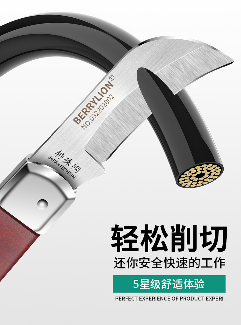 淘宝多功能不锈钢电工刀专用电缆剥皮剥线刀折叠特殊钢弯刃直刃剥线皮