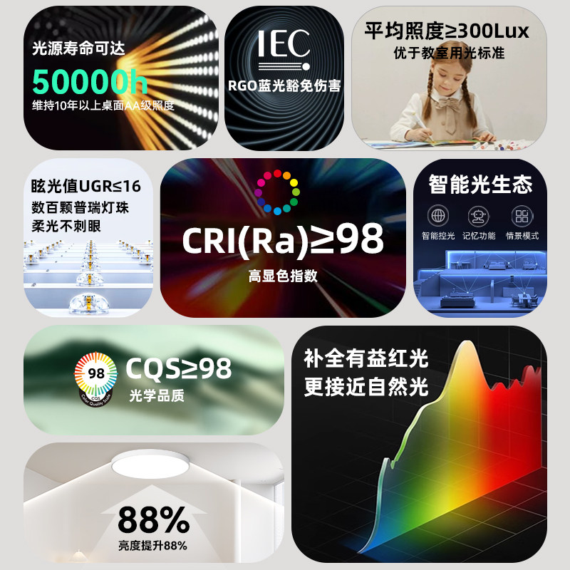 天全光谱护眼led吸顶灯儿童房现代简约卧室灯房间客厅书房主卧灯具