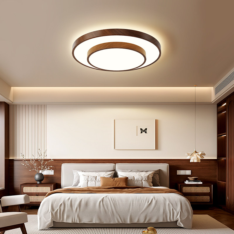 天ARROW/箭牌中古风卧室灯新中式复古护眼主卧圆形胡桃色木纹吸顶灯