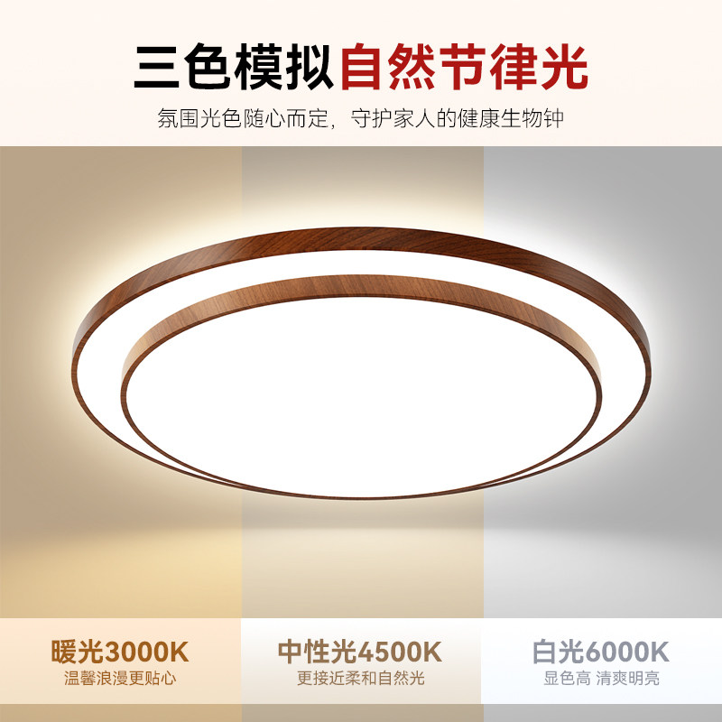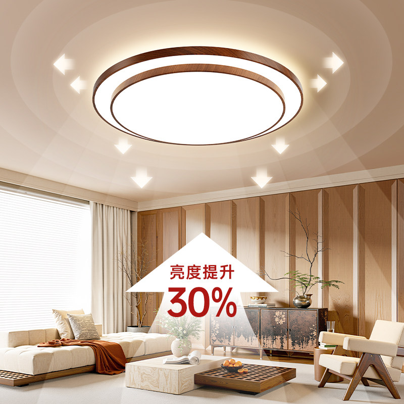 天猫箭牌照明客厅灯2026新款简约胡桃木色大厅主灯圆形LED护眼吸顶灯