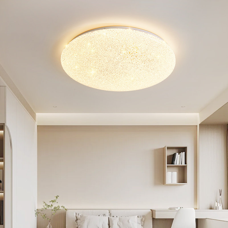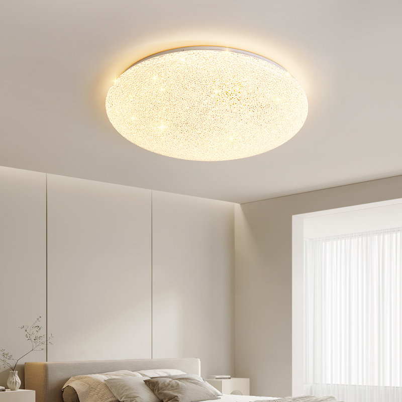 箭牌LED吸顶灯新款融合现代简约与轻奢风格,专为卧室设计,采用优质亚克力灯罩与金属边框,质感细腻,光线柔和均匀。创新满天星点阵光源布局,模拟自然星光,营造温馨浪漫氛围。搭载高品质LED芯片,无频闪、低蓝光,有效呵护双眼,特别适合长时间使用的卧室环境。智能调光调色功能,支持冷暖光自由切换,满足不同场景需求。安装便捷,适配多种层高,适用于主卧、儿童房等空间。源自中山灯具制造基地,品质可靠,节能环保,是提升家居格调的理想之选。