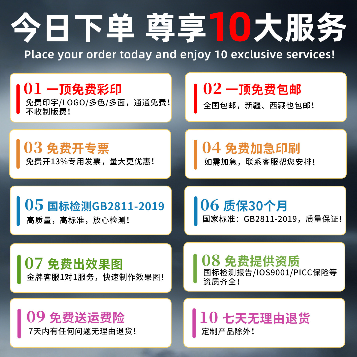 本款安全帽为10只装,符合中国国家标准(GB 2811-2019)认证,专为工地施工环境设计。采用高强度ABS工程塑料材质,抗冲击性强,轻便耐用,有效保护头部安全。帽体结构科学,配备透气孔设计,增强通风散热,佩戴舒适不闷热。支持定制企业LOGO及印字,提升品牌形象与团队辨识度。内衬可调节,适配不同头型,佩戴稳固。适用于建筑、电力、工程等多种施工场景,是领导巡检、团队作业的理想选择。兼具安全性、实用性与美观性,助力工地安全管理与企业形象展示。