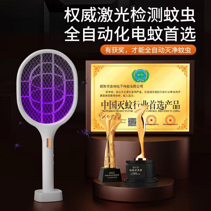 新款充电式电蚊拍集灭蚊拍与灭蚊灯二合一,高效实用。采用USB快充设计,续航持久,告别频繁更换电池的烦恼。高压电网瞬间击毙蚊蝇,安全网罩防止误触,使用更安心。白天可手持拍打,夜晚切换为诱蚊灯模式,利用紫光吸引蚊虫靠近并电击灭杀,双重防护更彻底。轻巧便携,适合家庭、宿舍、户外等多种场景。清洁方便,只需轻刷电网即可去除残渣。静音运行,不打扰休息。环保无毒,守护家人健康,是夏季防蚊的理想选择,让蚊子无处遁形,静享清爽夜晚。