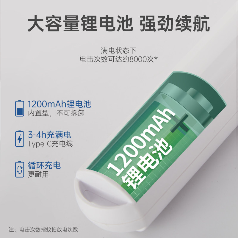 榄菊电蚊拍充电式家用强力2026新款,集电网拍与灭蚊灯二合一功能于一体,高效驱蚊更便捷。采用高密度三层安全防护电网设计,击蚊瞬间高压,灭蚊效果显著,同时内置LED紫光灯,夜间自动吸引蚊虫,双重保障全天候守护家庭健康。内置大容量锂电池,USB充电设计,续航持久,使用更省心。轻巧机身搭配防滑手柄,操作安全舒适,适合全家使用。无化学污染,环保静音,是夏季防蚊的理想选择。榄菊2026新款电蚊拍,强力灭蚊,智享清爽夏日。