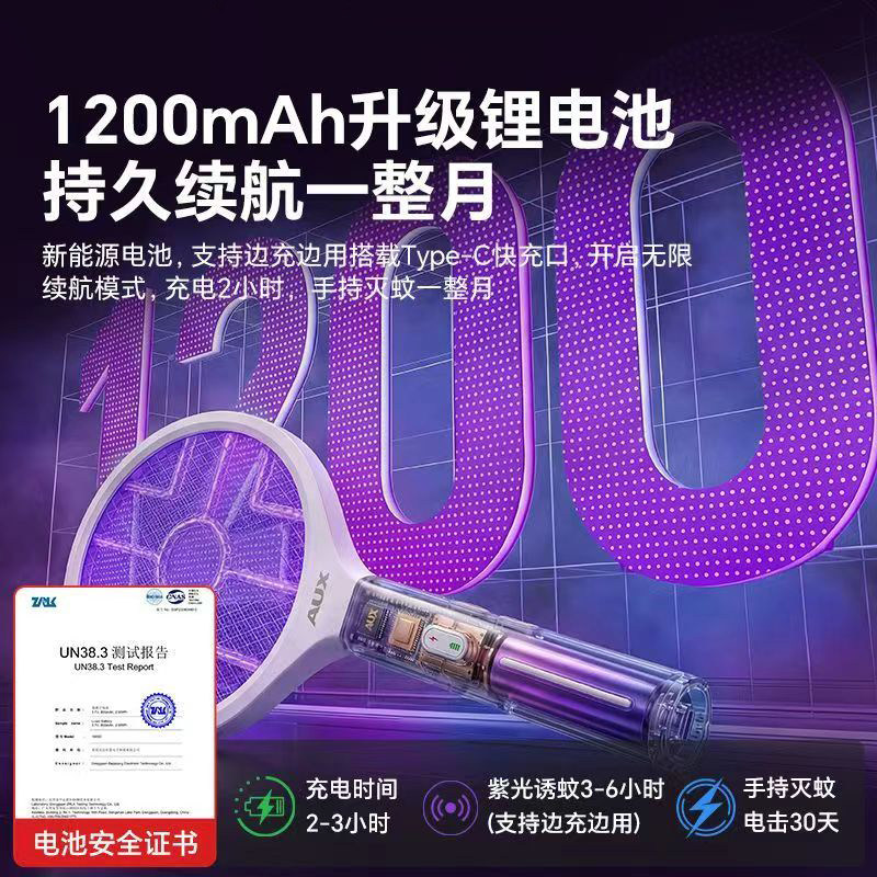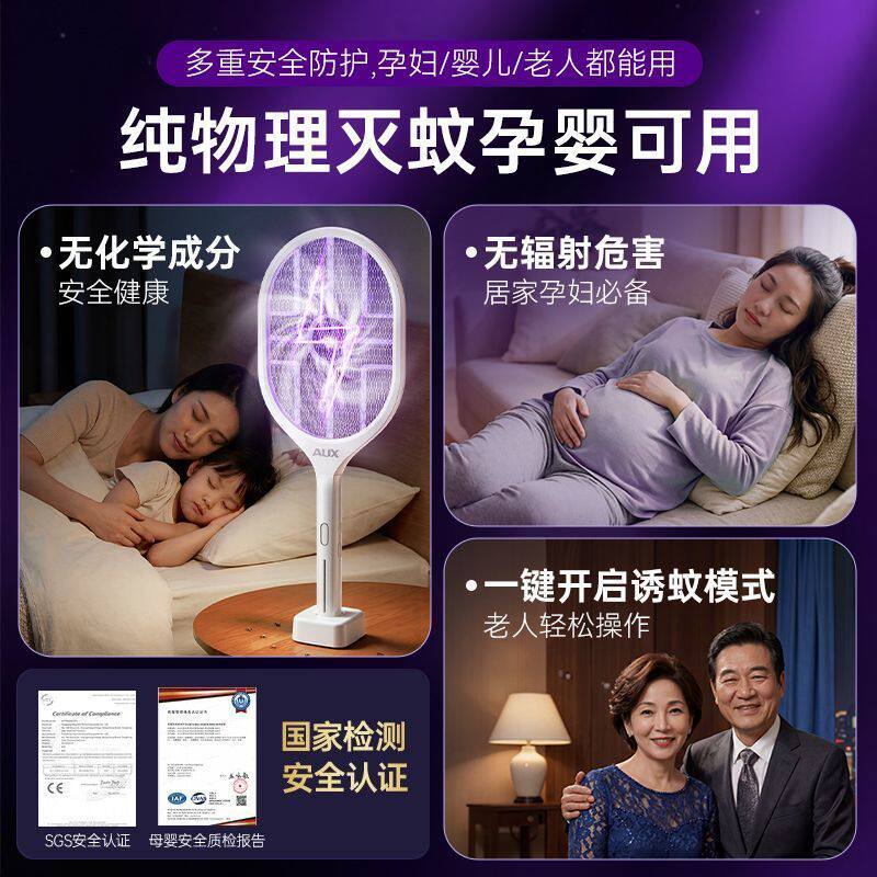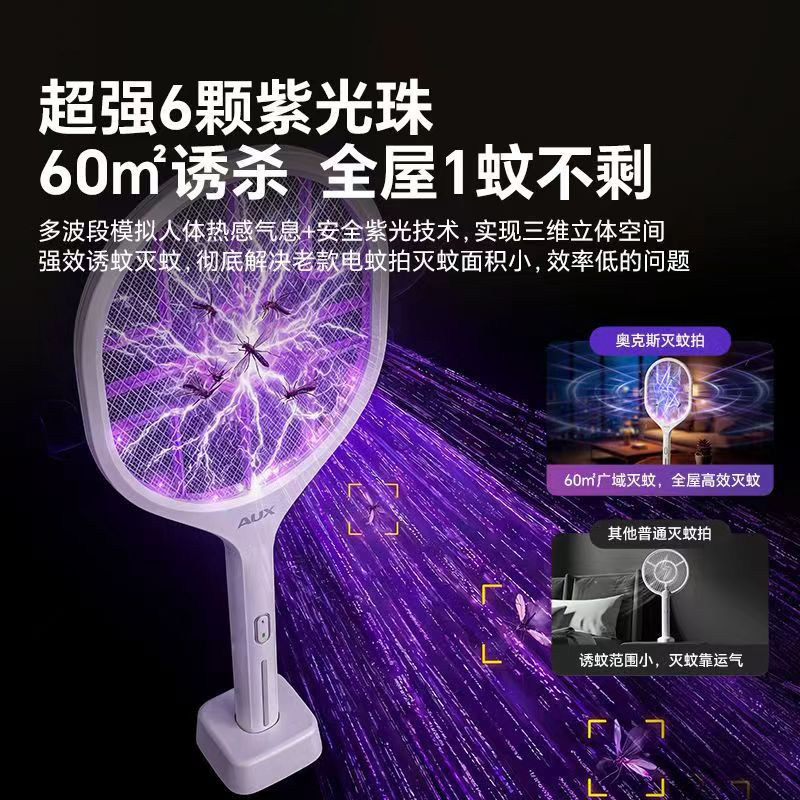 奥克斯电蚊拍充电式家用灭蚊灯超强力二合一2026新款,集电击灭蚊与诱捕驱蚊双重功能于一体,高效守护家居环境。采用三层安全防护电网设计,瞬间高压击打,灭蚊效果强劲,同时配备LED紫光诱蚊灯,吸引蚊蝇靠近并电击杀灭。内置可充电锂电池,USB充电便捷,续航持久,节能环保。轻巧机身搭配防滑手柄,使用安全省力。适用于卧室、客厅、厨房等多种场景,静音运行不打扰休息。2026新款升级安全防护机制,避免误触,家庭使用更安心。一机双用,既是灭蚊拍又是灭蚊灯,全天候守护家人远离蚊虫困扰,是夏季防蚊的理想之选。