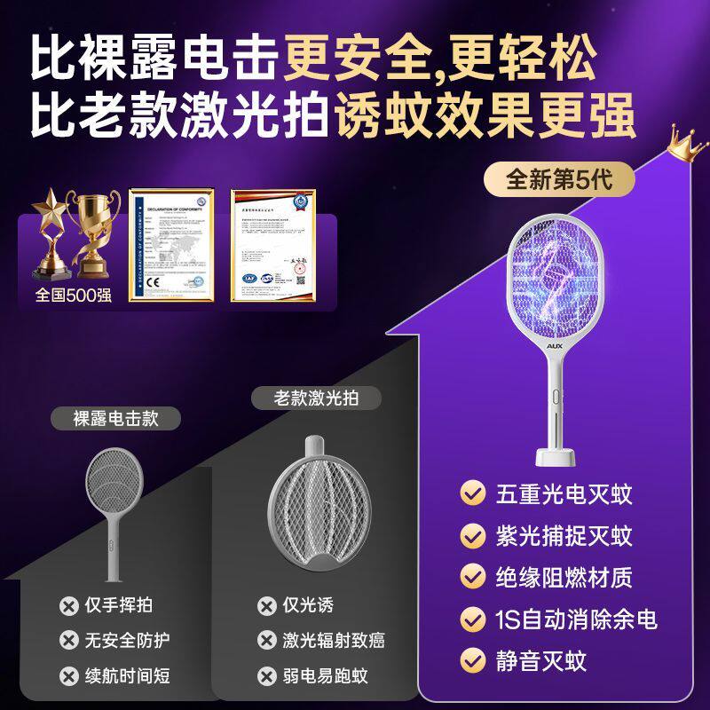 天猫奥克斯电蚊拍充电式家用灭蚊灯超强力二合一2026新款驱蚊苍蝇网拍