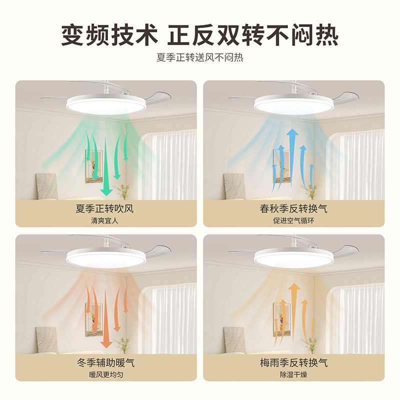 隐形风扇灯客厅家用变频大风力吊扇灯餐厅卧室吸顶带灯电风扇吊灯