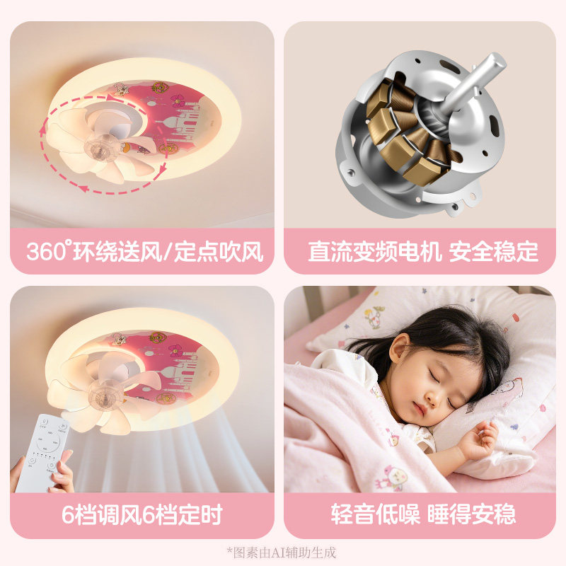 欧普儿童房灯带风扇女孩卧室全光谱护眼公主摇头吸顶灯风扇灯FS,专为女孩房设计,融合照明、风扇与装饰功能于一体。采用全光谱光源,模拟自然光,有效减少蓝光危害,呵护孩子视力健康。灯光柔和均匀,支持多档调光,营造温馨舒适的睡眠与学习环境。内置静音风扇,四季可用,摇头送风更均匀,提升空气流通。外观采用梦幻公主风设计,搭配精致灯罩与柔和色彩,增添童趣与美感。吸顶安装节省空间,安全稳固,适合各种层高。欧普品质保障,安全耐用,是打造理想儿童房的理想之选,让孩子在健康、舒适、美观的环境中快乐成长。