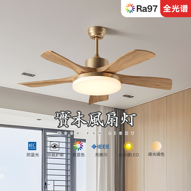 天猫原木风风扇灯吊扇灯静音客厅灯卧室餐厅护眼奶油风简约现代电风扇
