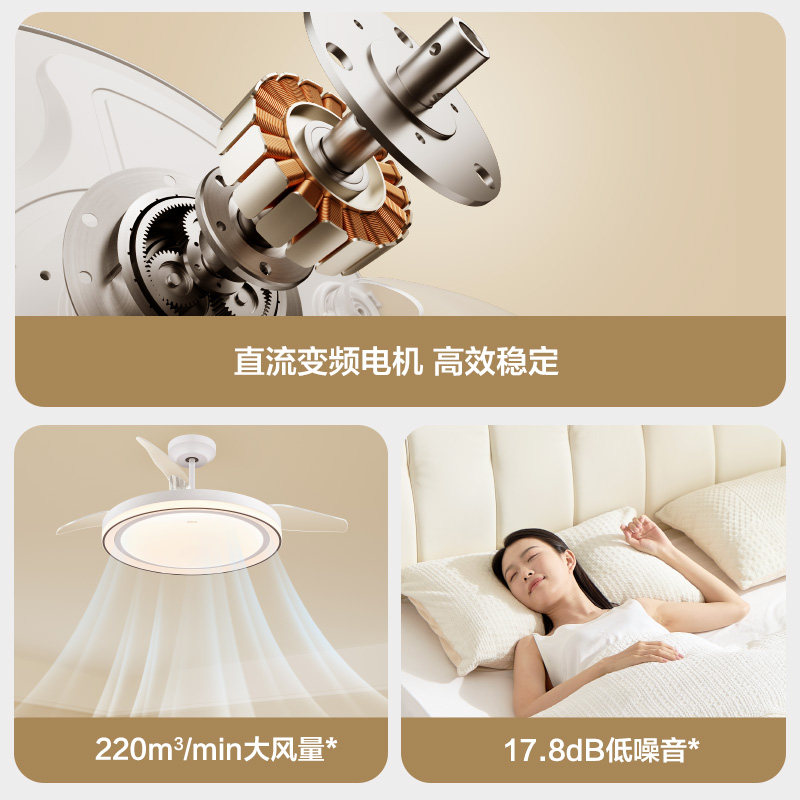 天德国柏曼隐形电风扇灯卧室吸顶灯客厅餐厅一体全光谱led护眼灯具