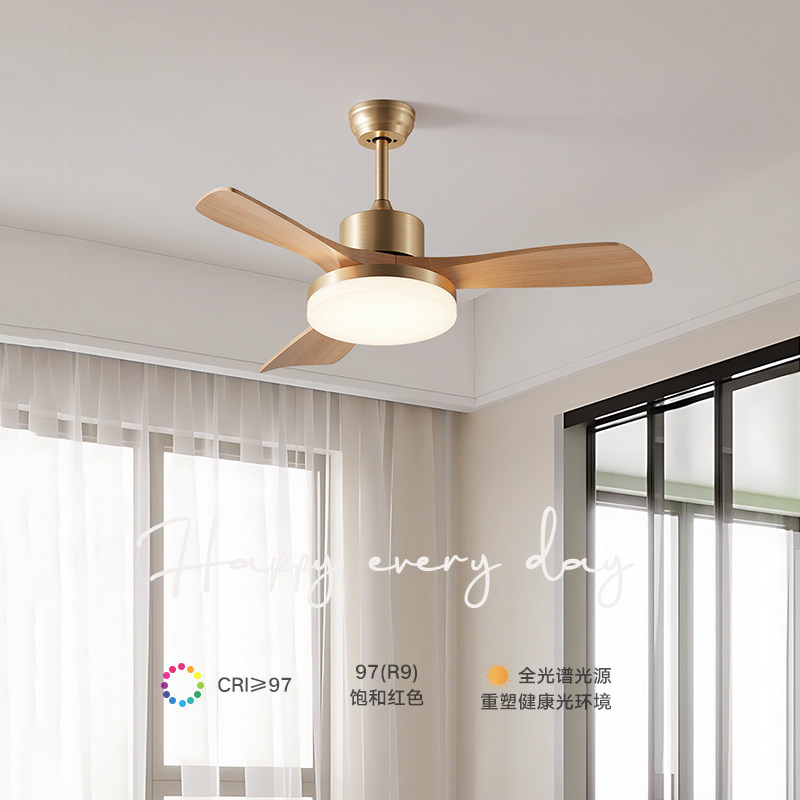原木风风扇灯吊扇灯静音客厅灯卧室餐厅护眼奶油风简约现代电风扇
