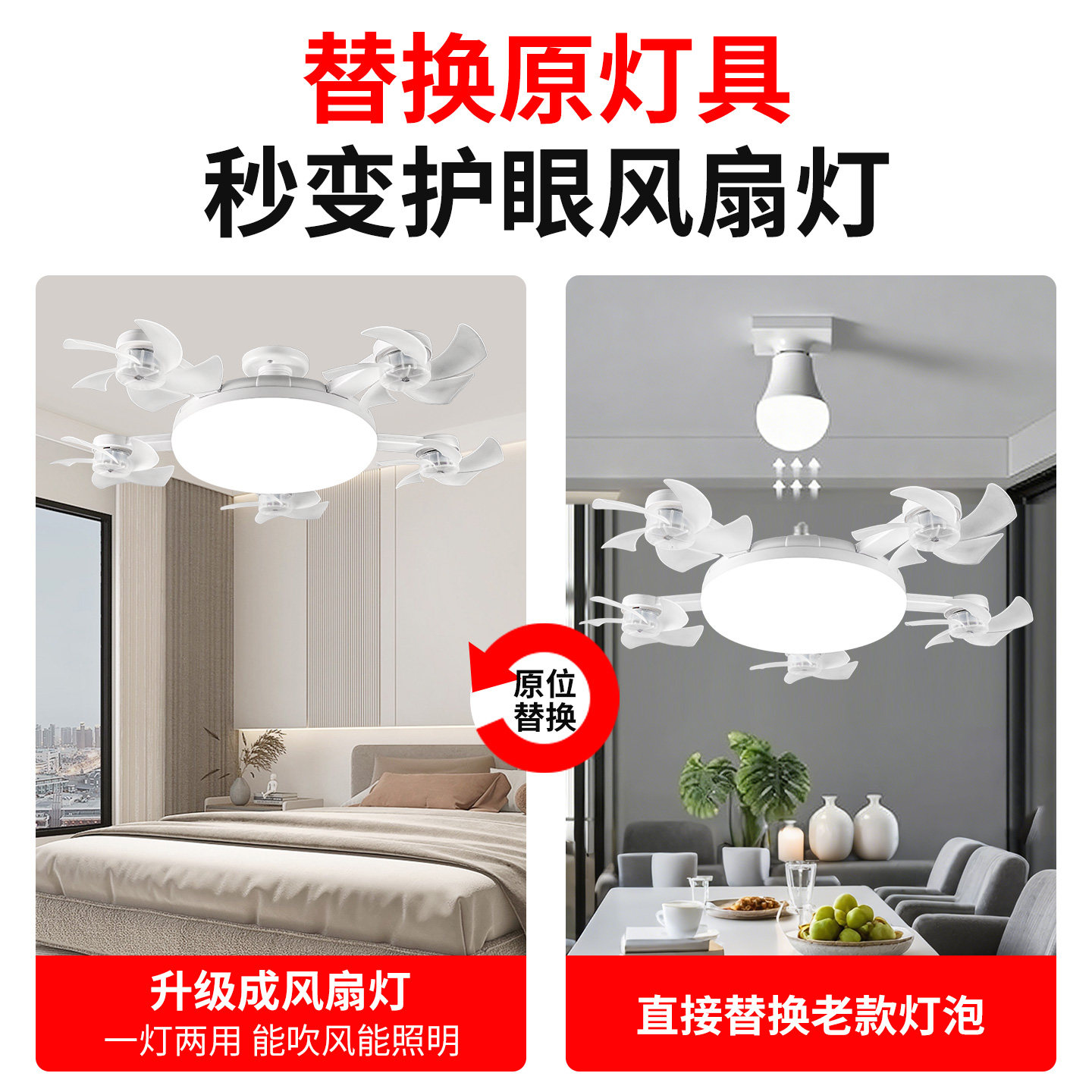 天猫2026新款风扇灯E27螺口吊扇灯客厅卧室餐厅照明电风扇吊灯一体灯
