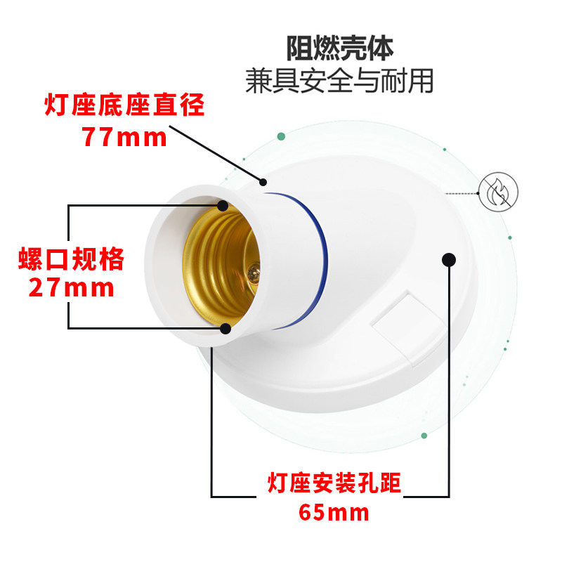 E27螺口浴霸全牙灯头灯座带支架底座加厚耐高温浴霸灯泡陶瓷灯头