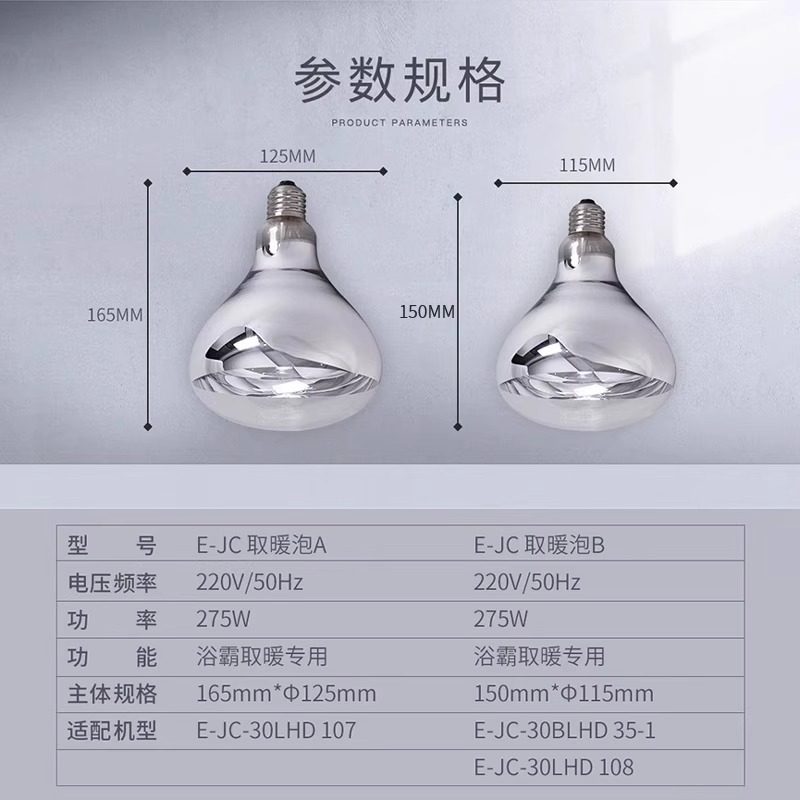 天浴霸照明灯泡中间防水防爆led光源卫生间浴室取暖灯E27螺口小灯泡
