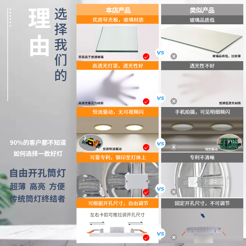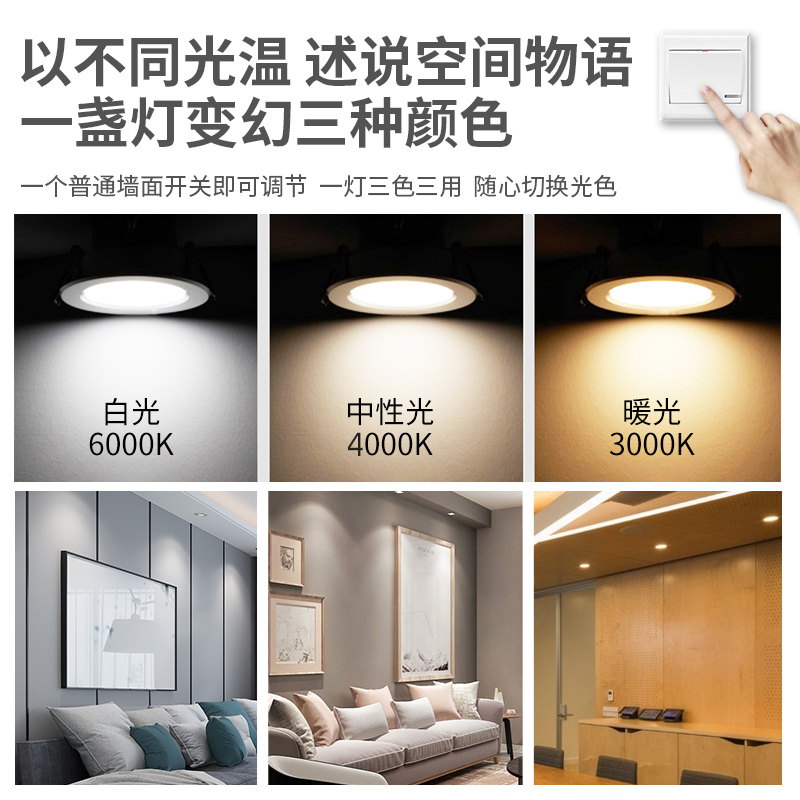 天猫led超薄筒灯嵌入式天花灯自由开孔灯射灯走廊过道灯三色变光洞灯