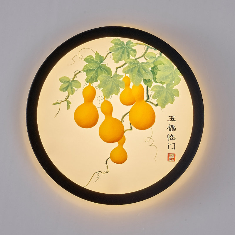 淘宝2026新款壁灯楼梯灯新中式客厅背景墙灯过道圆形壁画灯卧室床头灯