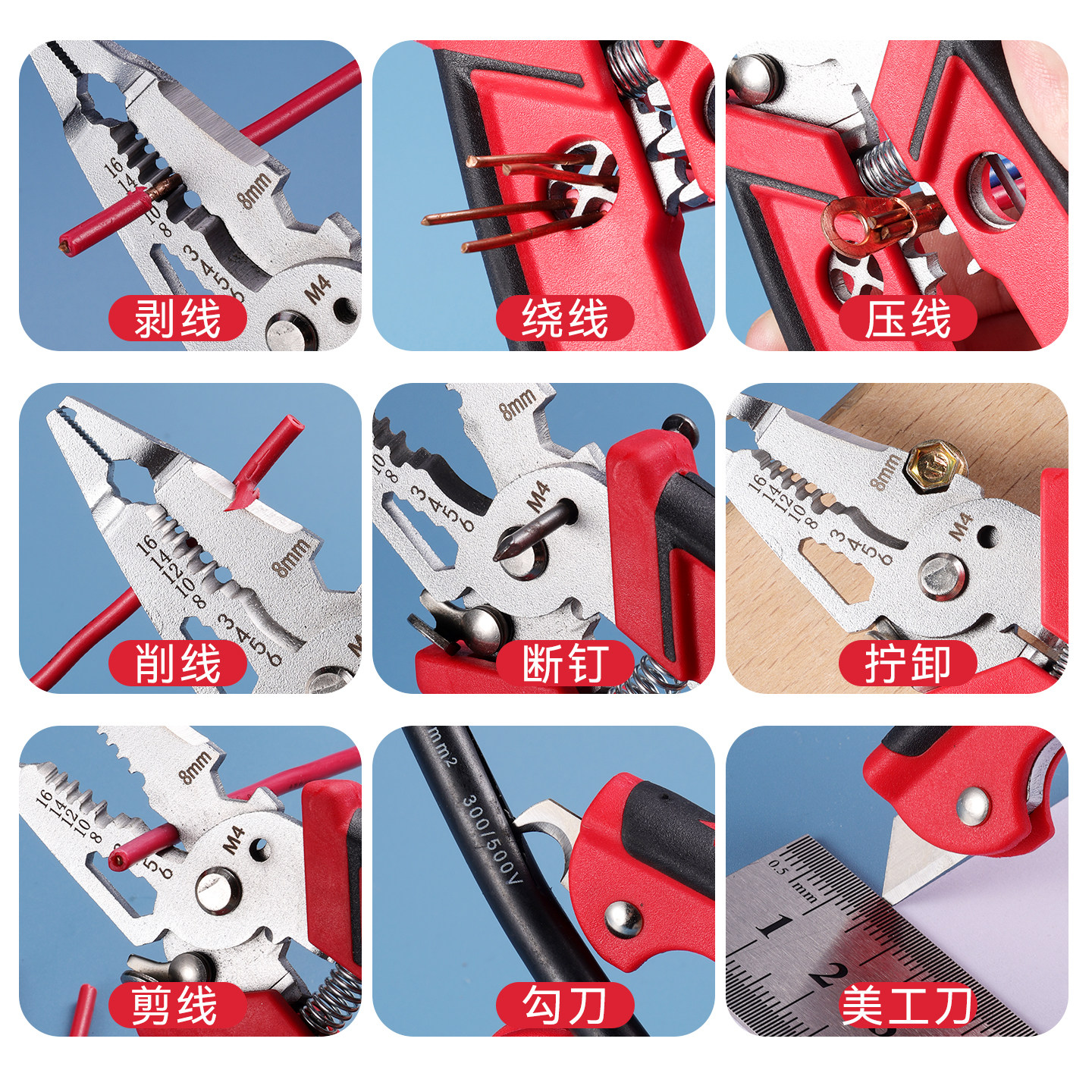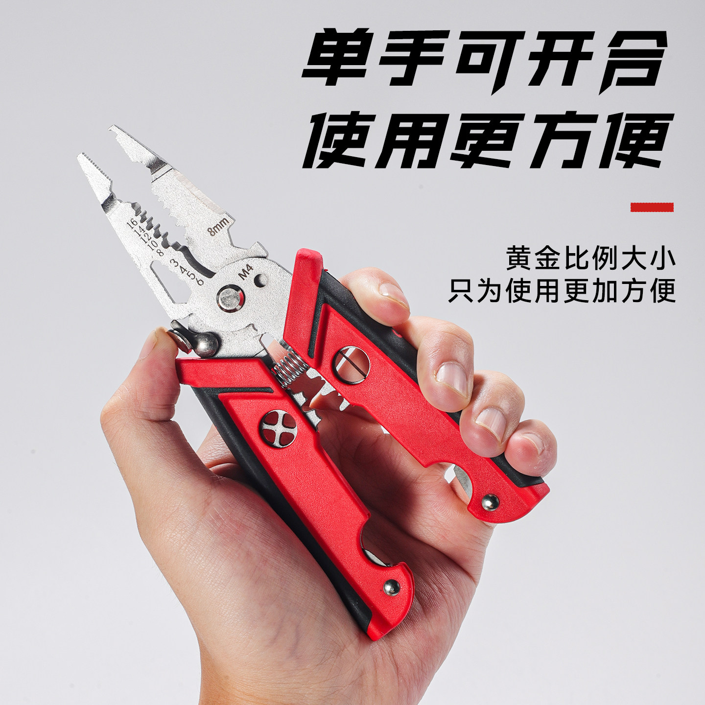淘工业级多功能带测电笔剥线钳电工专用分线器可调节绕线大开口剪切