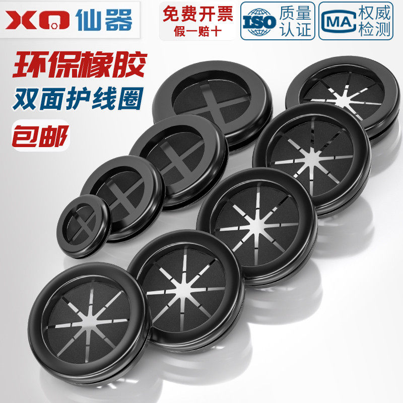 天猫双面护线圈环保橡胶米字型开孔护线圈配电箱出线孔护套防尘过线圈