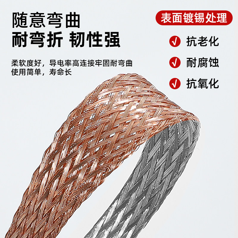 淘宝铜编织带桥架接地连接线平方可定制镀锡扁铜线配电箱门专用跨接线