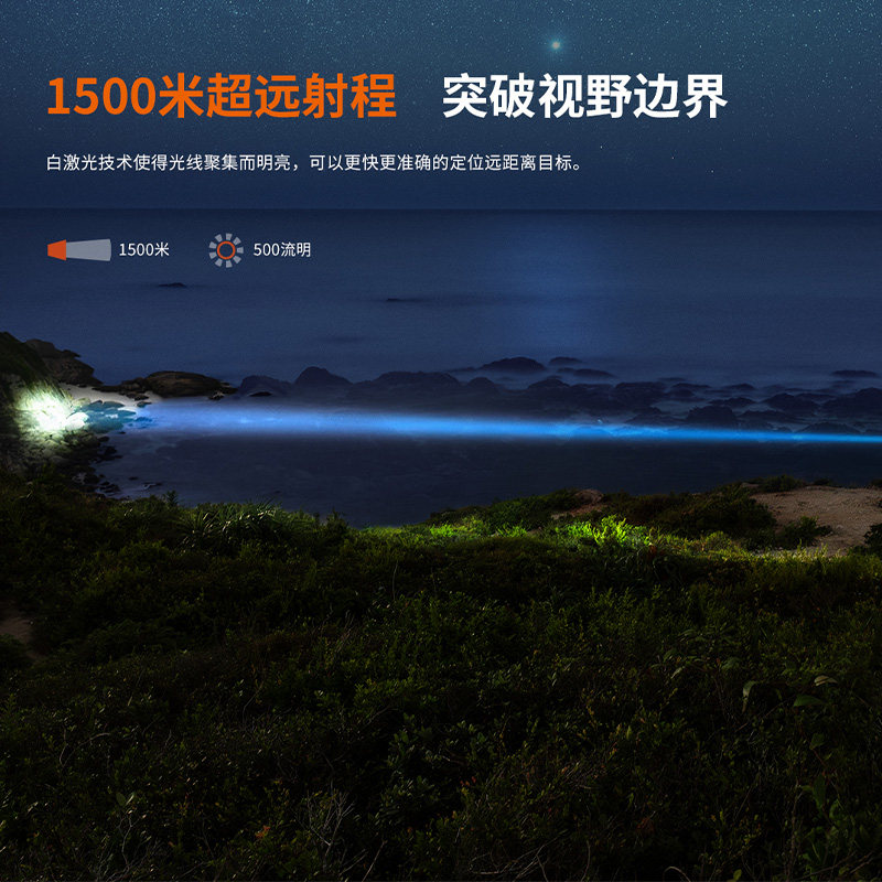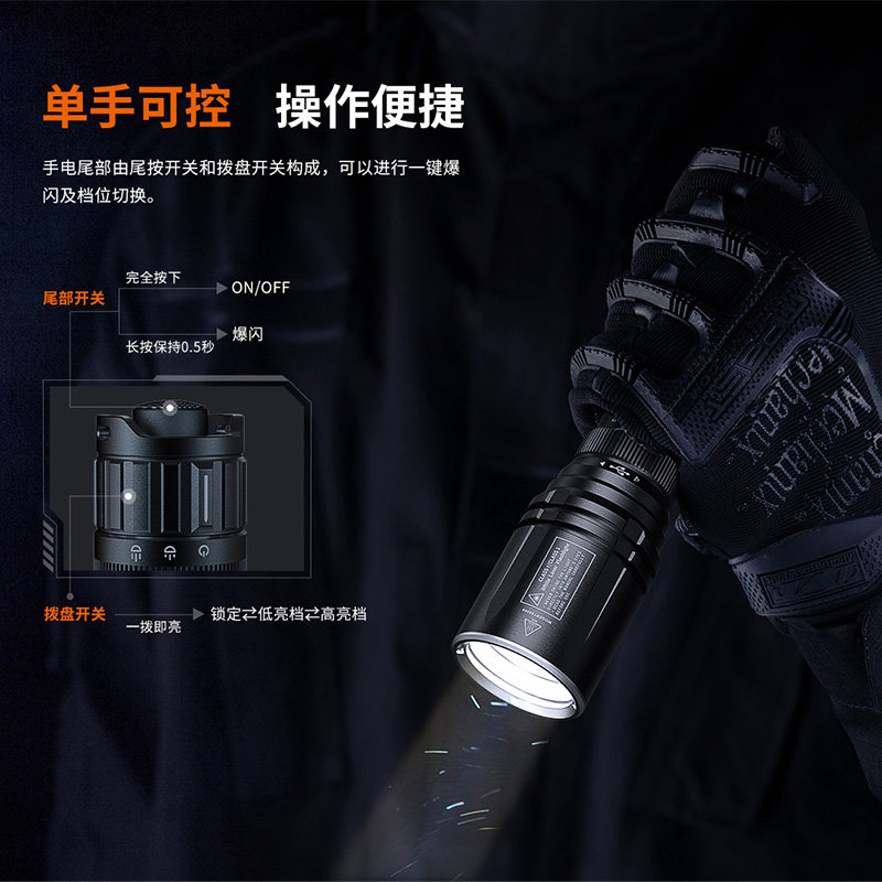 FENIX菲尼克斯TK30R是一款高性能白激光战术手电,专为户外搜索、战术防卫及极端环境设计。采用先进白激光光源,聚焦性强,有效照射距离可达千米以上,输出亮度高达1200流明,光斑集中,远射能力卓越。具备多档亮度调节与爆闪模式,适应不同场景需求。机身采用航空级铝合金材质,坚固耐用,并通过IP68级防水防尘认证,可在暴雨、泥泞等恶劣环境中稳定运行。尾部战术开关设计,操作便捷,支持瞬间点亮。TK30R兼顾远射性能与便携性,是户外探险、搜救行动及专业战术应用的理想照明工具。