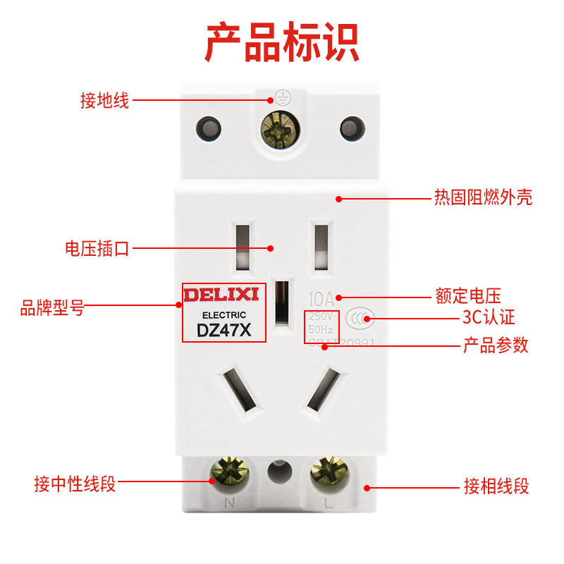淘宝德力西DZ47X模数化导轨式插座AC30二三插五孔10/16A配电箱插座