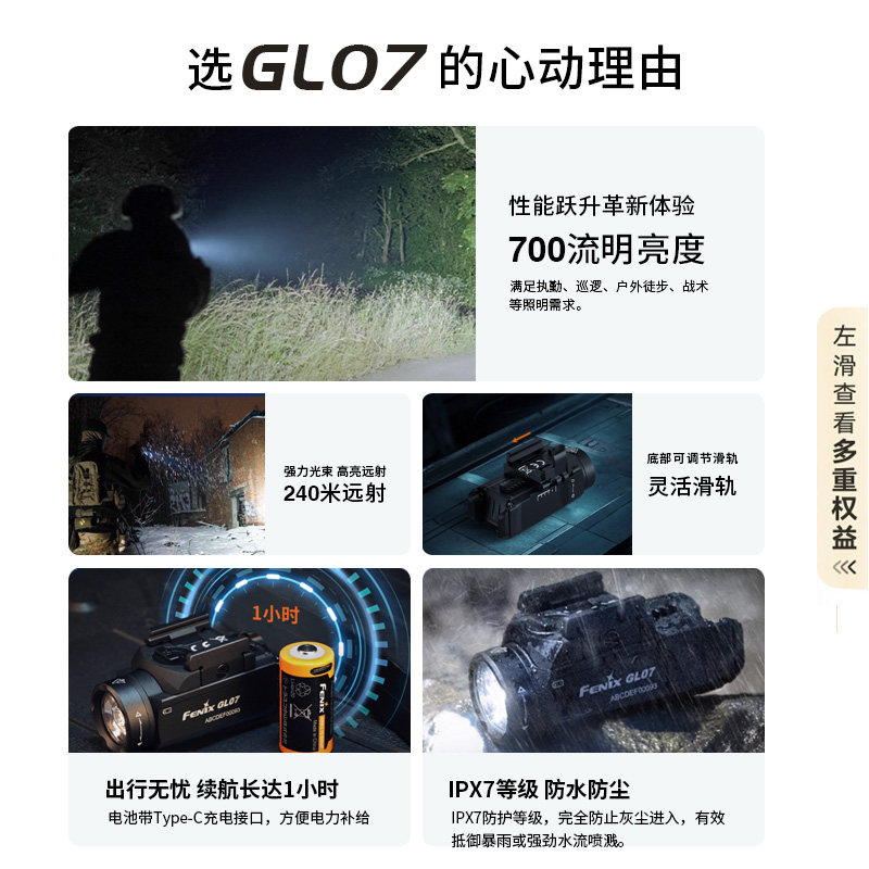 天猫Fenix菲尼克斯GL07快拆滑轨下挂手电筒超便携战术高亮户外照明灯