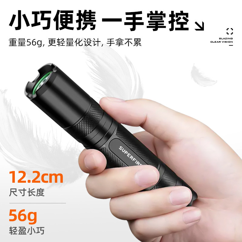 神火官方旗舰店S5小型手电筒,集超亮照明与远射性能于一身,专为户外探险与日常家用设计。采用高品质LED灯珠,亮度高达1000流明,照射距离可达200米以上,夜间探路、露营、徒步轻松应对。机身采用航空级铝合金材质,轻盈坚固,防水防摔,适应多种恶劣环境。迷你便携设计,可轻松放入口袋或背包,随取随用。内置大容量可充电锂电池,支持USB快充,续航持久。S5不仅是一款强光小手电,更是您安全出行的可靠伙伴,适用于家庭应急、户外作业、夜间骑行等多种场景,是值得信赖的照明利器。