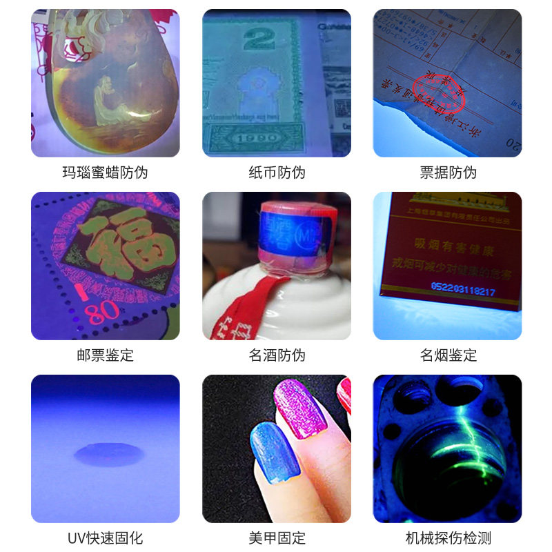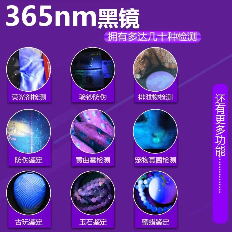 紫光灯鉴定专用365nm伍德氏灯是一款高精度紫外线手电筒,采用优质UVA LED灯珠,波长精准稳定在365nm,有效激发荧光物质反应。广泛应用于防伪验钞、烟酒真伪鉴别、证件检测等领域,能清晰显现隐藏水印与防伪标记。同时,该灯也是宠物健康检测的得力工具,可快速筛查猫藓等真菌感染,帮助及早发现皮肤病。灯体轻便耐用,操作简单,配备防漏光设计,使用安全。无论是日常验钞、收藏鉴定,还是宠物护理,这款伍德氏灯都展现出高效与实用性,是家庭和专业场景的理想选择。