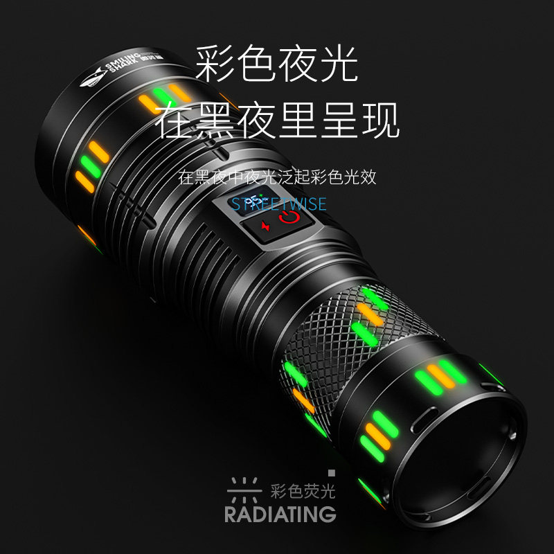 天猫微笑鲨手电筒强光充电超长续航大容量超亮远射大功率激光2025新款